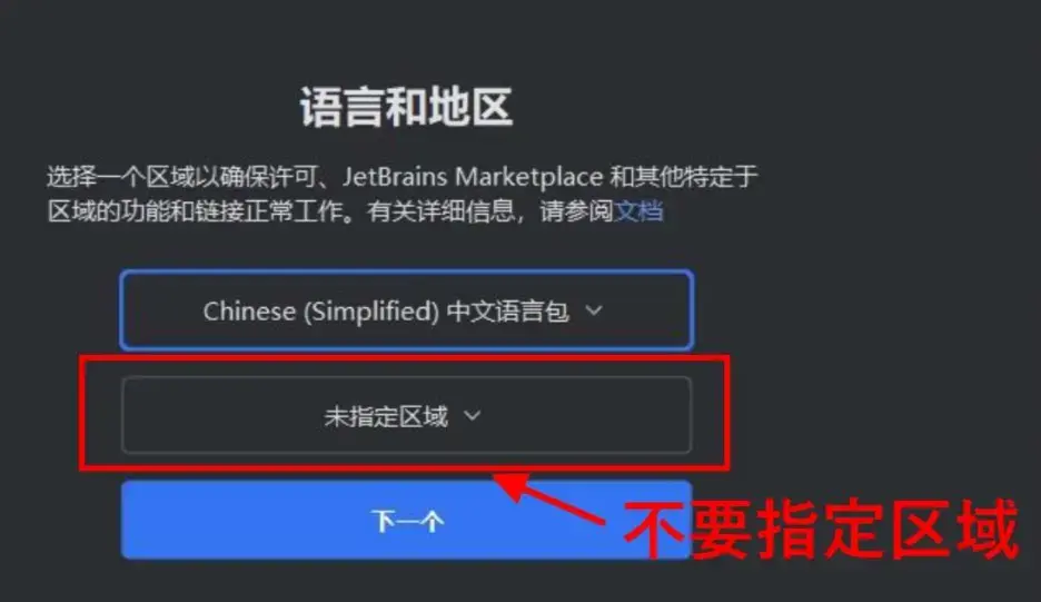 * 注意,2024.2 之后的版本,若初次安装,会提示选择所在区域,如下图所示,如果选择了 China Mainland,会反复跳出激活码并提示无效,原因是新版本会拦截 .cn 域名