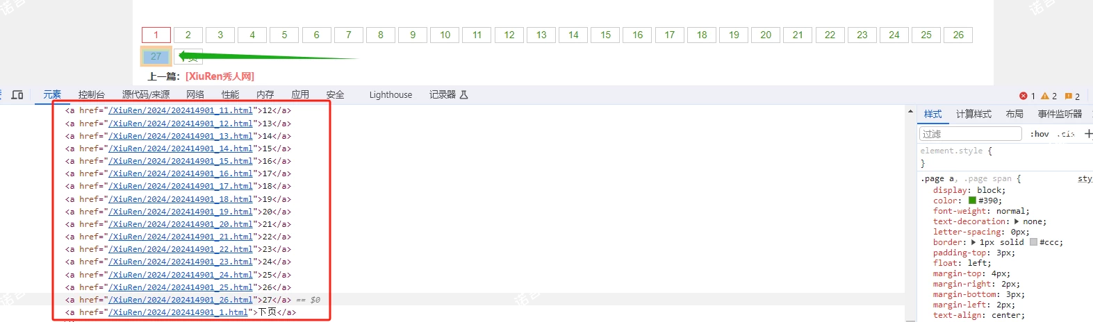 - 除此页外的剩下页对应链接均有: 如href="/XiuRen/2024/202414901_1.html">