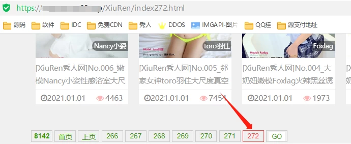 于是我们发现:如果我们进入网页为https://www.xxxx.com/XiuRen/, 则可以看到有:272页