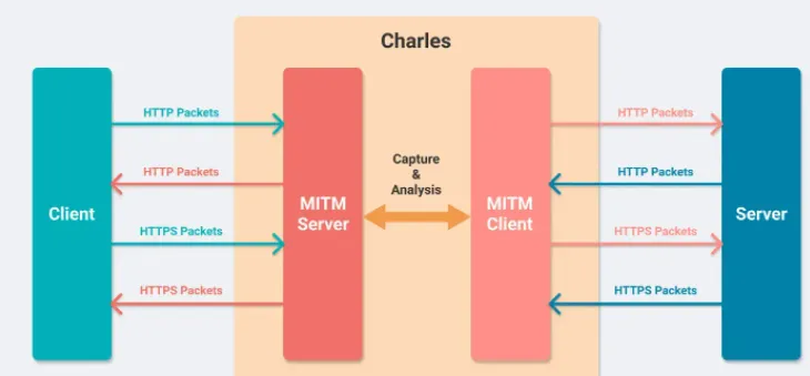 具体简述起来就是对客户端设置抓包工具(Charles/Fiddler等)的代理,作为客户端的代理,由抓包工具连接到实际服务器。